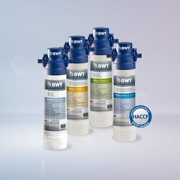 Woda-Pure SS系列臺(tái)下式凈水器功能有效去除自來水中的余氯、異色異味、有機(jī)污染物、重金屬、細(xì)菌及孢子孢囊等;保留水中對(duì)人體健康有益的礦物質(zhì)和微量元素。特點(diǎn). 0.01μm的中空纖維超濾膜,有效去除細(xì)菌與孢子孢囊;. 各款濾芯相容控制閥設(shè)計(jì);. 按需搭配串聯(lián)或者并聯(lián);. 全方位擴(kuò)展應(yīng)用范圍;. 安裝、更換濾芯簡(jiǎn)單便捷;. 更換濾芯時(shí)自動(dòng)切斷水流。BWT Woda-Pure S 臺(tái)下式凈水器通過HACCP(國際食品安全標(biāo)準(zhǔn))認(rèn)證0.01微米中空纖維超濾膜,兼顧精細(xì)過濾的同時(shí)也保證大流量出水。型號(hào)Woda-Pure S–F1Woda-Pure S–F5Woda-Pure S–CWoda-Pure S–UFWoda-Pure S–CUF管徑in3/8‘'3/8‘'3/8‘'3/8‘'3/8‘'濾材折疊濾芯折疊濾芯顆?;钚蕴縋P棉濾芯+超濾膜載銀活性炭棒+超濾膜過濾孔徑μm150.010.01工作壓力MPa0.2-0.80.2-0.80.2-0.80.2-0.80.2-0.8水批額定總凈水量m34.04.02.52.52.5水批凈水流量L/min3.33.33.33.33.3進(jìn)水溫度/環(huán)境溫度5-30/5-405-30/5-405-30/5-405-30/5-405-30/5-40高x寬x深mm385x125x88385x125x88385x125x88385x125x88385x125x88指導(dǎo)價(jià)¥1280980188024803680產(chǎn)地奧地利奧地利奧地利奧地利奧地利