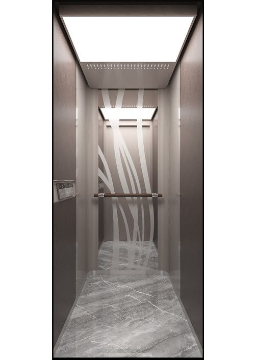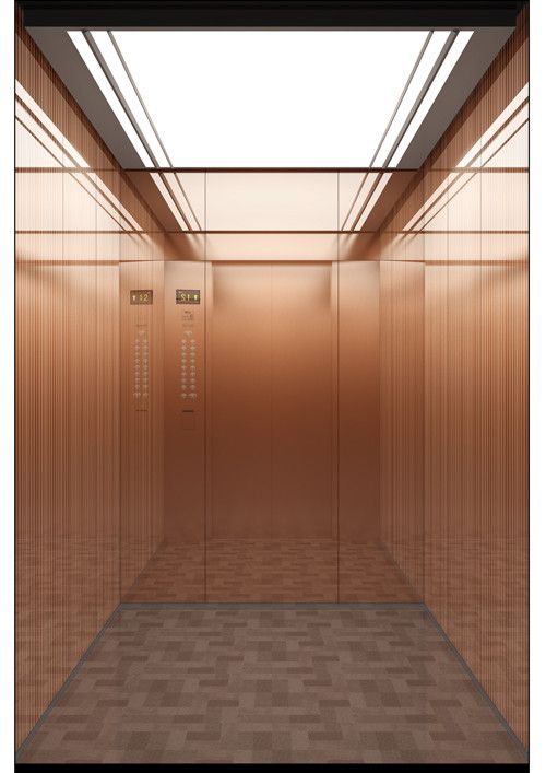 轎廂型號(hào):YT-4649  天井:SKY-WD,金屬烤漆(YM-14)  兩側(cè)、后側(cè)板:兩側(cè)鏡面蝕刻(HM-0142)鍍古銅色,后側(cè)鏡面鍍古銅色  前側(cè)板、門楣:發(fā)紋鍍古銅色  轎門:發(fā)紋鍍古銅色  地板:PVC(FL-P29)  操作盤(一體式):顯示屏:7寸彩屏/其它:同BC-P2BT3