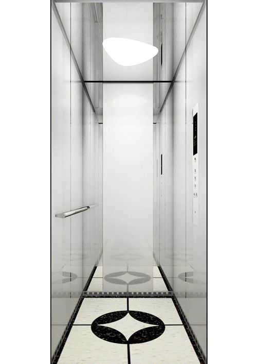 天井:ECO-JS;鏡面不銹鋼+發(fā)紋不銹鋼  前側(cè)板、門楣:發(fā)紋不銹鋼  兩側(cè):發(fā)紋不銹鋼+彩紋鋼板(GC27)  后側(cè)板:彩紋鋼板(GC27)+發(fā)紋不銹鋼+鏡面飾條  轎門:發(fā)紋不銹鋼  操作盤:BM-D2FT6  地板:PVC拼花(FL-PH24)